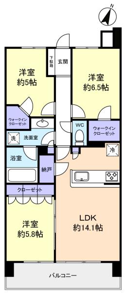 - LD(11畳),洋室(6.5畳),洋室(5.8畳),洋室(5畳),K