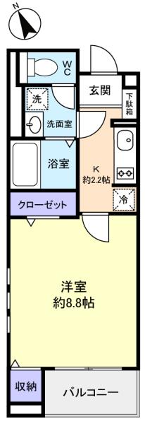 - K(2.2畳),洋室(8.8畳)