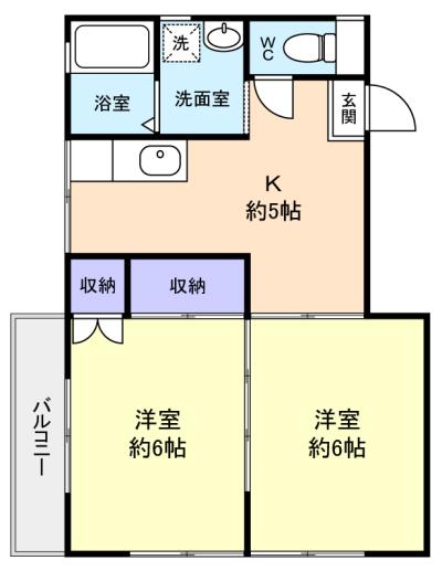 - 洋室(6畳),洋室(6畳),K(5畳)
