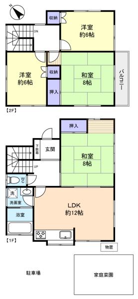 - LDK(12畳),和室(8畳),和室(8畳),洋室(6畳),洋室