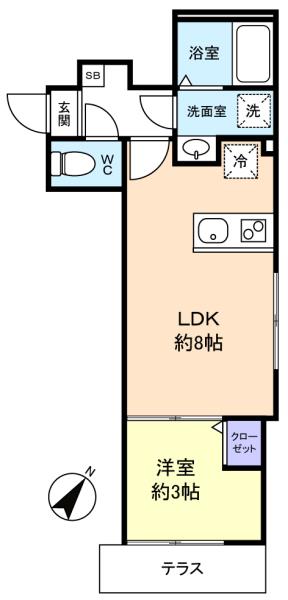 - 洋室(3畳),LDK(8畳)
