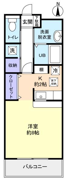- 洋室(8畳),K(2畳)