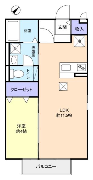 - 洋室(4畳),LDK(11.5畳)