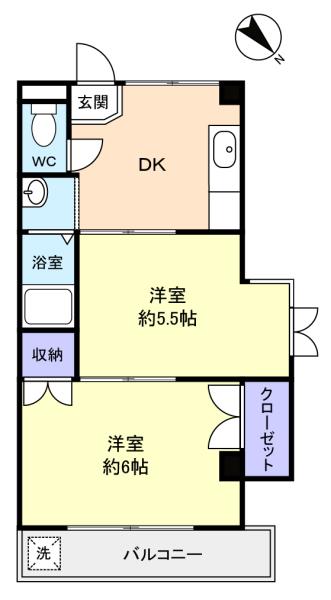 - 洋室(6畳),洋室(5.5畳),DK(6畳)