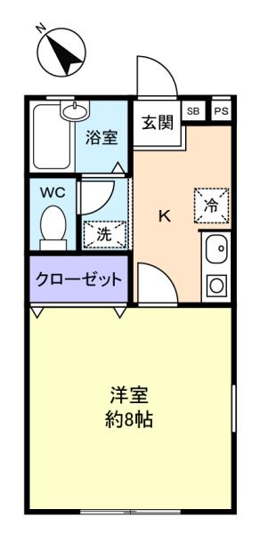 - 洋室(8畳),K(4畳)
