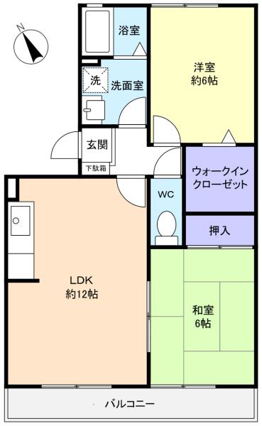- 洋室(6畳),和室(6畳),LDK(12畳)