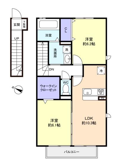 - LDK(10.3畳),洋室(6.2畳),洋室(6.1畳)