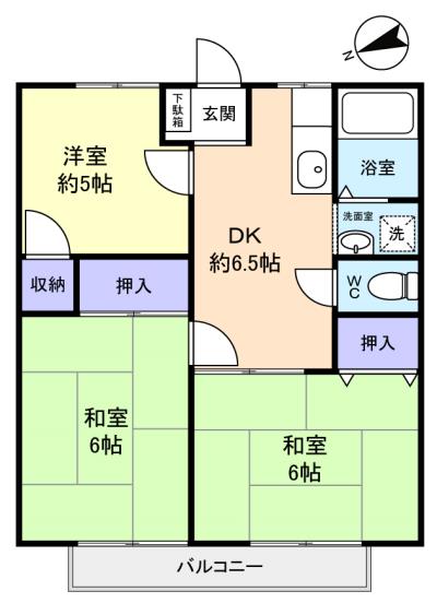 - 洋室(5畳),和室(6畳),和室(6畳),DK(6.5畳)