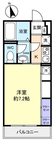 - 洋室(7.2畳),K(2畳)