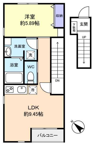 - LDK(9.4畳),洋室(5.8畳)