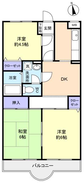 - DK(8畳),洋室(4.5畳),洋室(6畳),和室(6畳)
