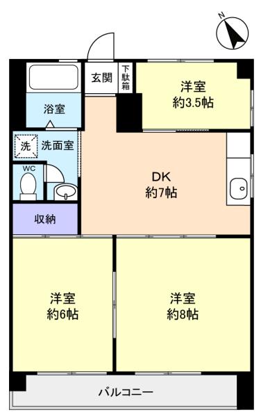- DK(7畳),洋室(8畳),洋室(6畳),洋室(3.5畳)