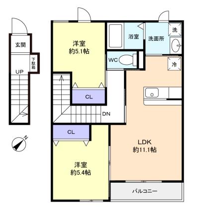 - LDK(11.1畳),洋室(5.4畳),洋室(5.1畳)