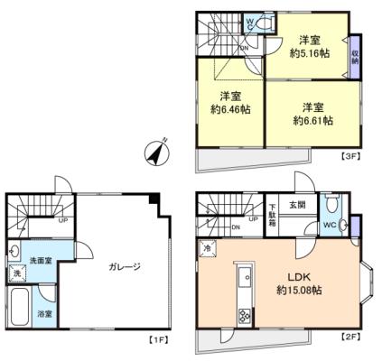 - LDK(15畳),洋室(5.1畳),洋室(6.6畳),洋室(6.4畳)