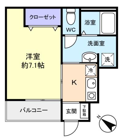 洋室(7.1畳),K(1.5畳)