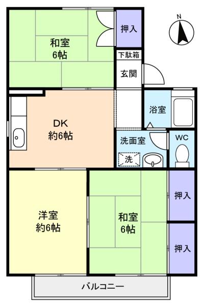 洋室(6畳),和室(6畳),和室(6畳),DK(6畳)