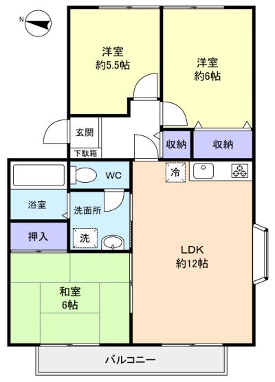 - LDK(12畳),洋室(5.5畳),洋室(6畳),和室(6畳)