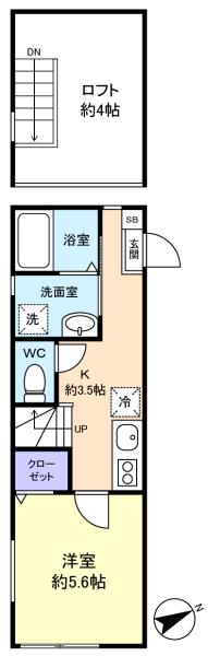- 洋室(5.6畳),K(3.5畳),その他(4畳)