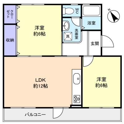 LDK(12畳),洋室(6畳),洋室(6畳)