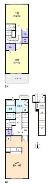 - LDK(11.8畳),洋室(7.1畳),洋室(6.4畳)