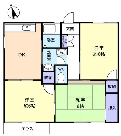 - 和室(6畳),洋室(6畳),洋室(6畳),DK(6畳)