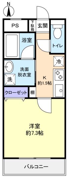 - 洋室(7.3畳),K(3.3畳)