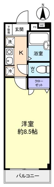 - 洋室(8.5畳),K(2畳)