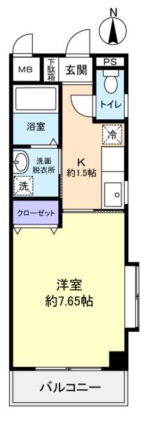 - 洋室(7.5畳),K(1.5畳)