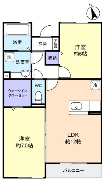 - LDK(12畳),洋室(7.5畳),洋室(6畳)