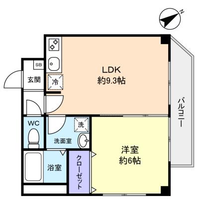 - 洋室(6畳),LDK(9.3畳)