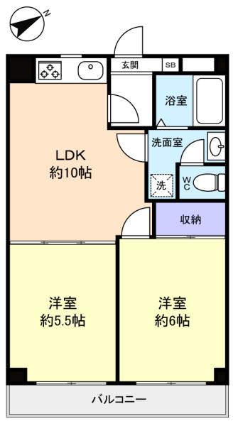 - LDK(10畳),洋室(6畳),洋室(6畳)