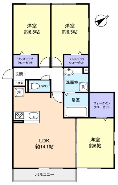 - LDK(14.1畳),洋室(6.5畳),洋室(6.5畳),洋室(6畳)