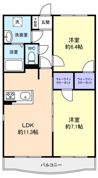 - LDK(11.3畳),洋室(7畳),洋室(6.4畳)