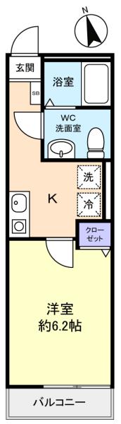 - 洋室(6.2畳),K(2.5畳)