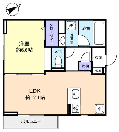 - LDK(12.1畳),洋室(6.6畳)