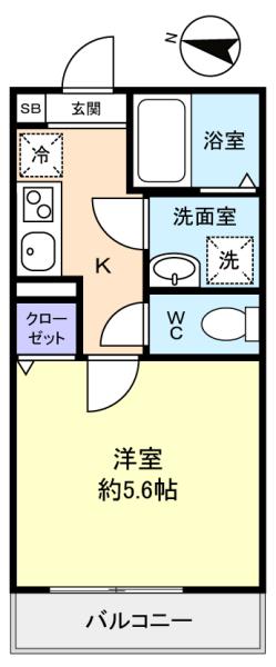 - 洋室(5.6畳),K(2畳)