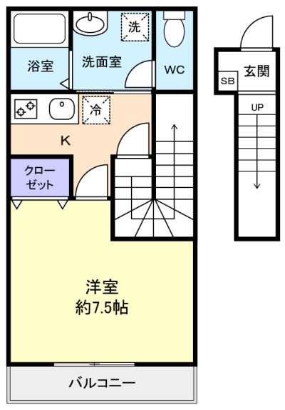 - 洋室(7.5畳),K(1.5畳)