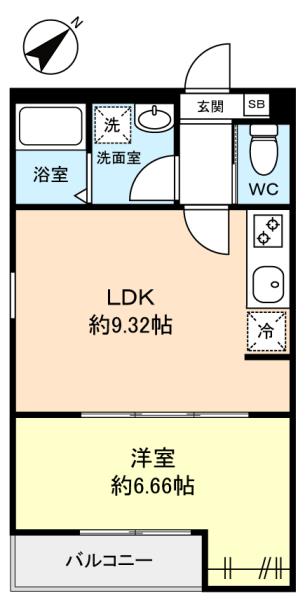 - LDK(9.3畳),洋室(6.6畳)