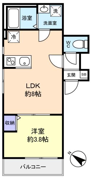 - 洋室(3.8畳),LDK(8畳)