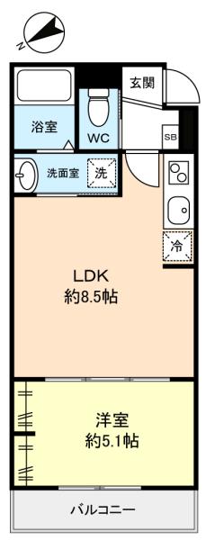 - 洋室(5.1畳),LDK(8.5畳)