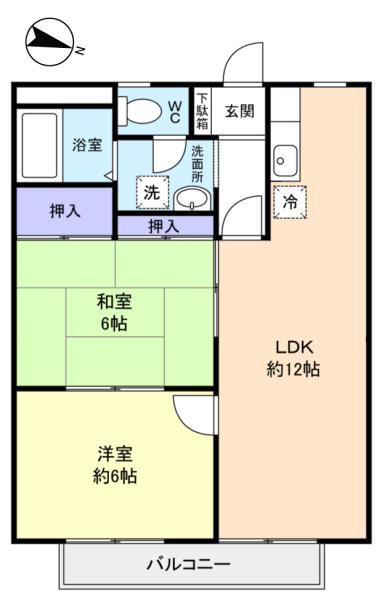 - 洋室(6畳),和室(6畳),LDK(12畳)