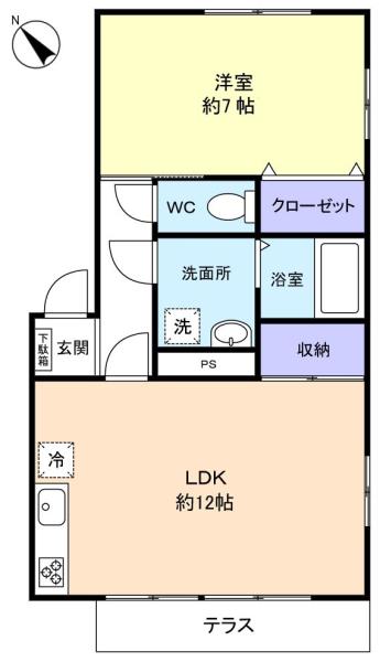 LDK(12畳),洋室(7畳)