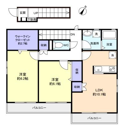 - LDK(10.1畳),洋室(6.2畳),洋室(6.1畳)