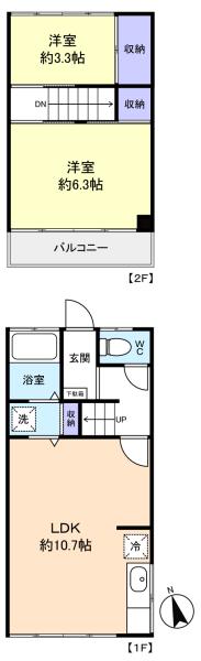 - LDK(10.7畳),和室(3.3畳),和室(6.3畳)