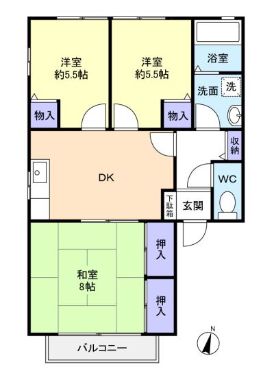 - DK(6畳),洋室(5.5畳),洋室(5.5畳),和室(8畳)