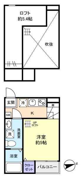 - 洋室(5畳),K(2畳),その他(5.4畳)