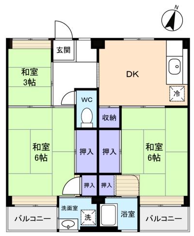 - DK(5畳),和室(3畳),和室(6畳),和室(6畳)