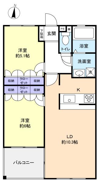 - LDK(10.3畳),洋室(6畳),洋室(5.1畳)
