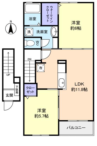 - LDK(11.8畳),洋室(6畳),洋室(5.7畳)