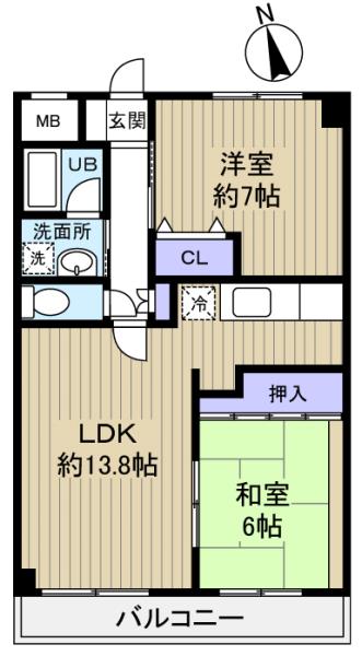 - LDK(13.8畳),洋室(7畳),和室(6畳)